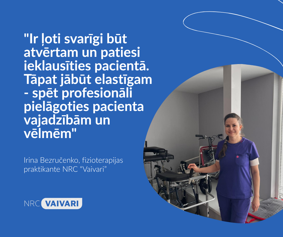 Es izvēlējos rehabilitācijas centru “Vaivari”, jo tas ir viens no vadošajiem rehabilitācijas centriem Latvijā ar plašu specializāciju un augstiem profesionālajiem standartiem. Man bija svarīgi iegūt praktiskas iemaņas multidisciplinārā komandā, kur fizioterapeits cieši sadarbojas ar ārstiem, ergoterapeitiem un citiem speciālistiem.