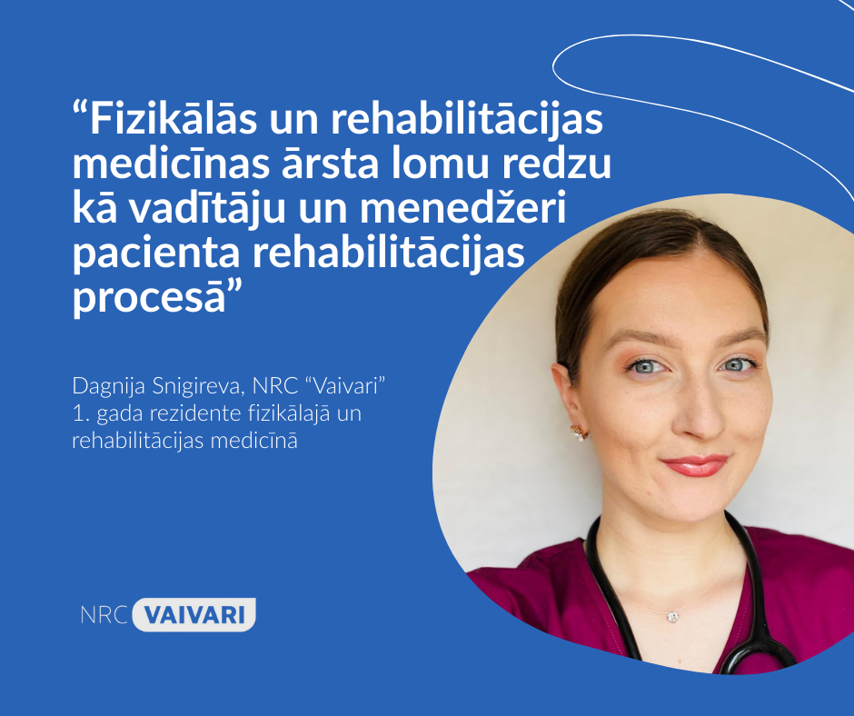 Šoreiz iepazīstinām ar Dagniju Snigirevu, NRC “Vaivari” 1. gada rezidenti fizikālajā un rehabilitācijas medicīnā. Intervijā Dagnija stāsta par savu ceļu līdz šai specialitātei, rezidentūras ikdienas izaicinājumiem, komandas darba nozīmi un to, kas viņu iedvesmo darbā ar pacientiem. Sarunā atklājas arī tas, kā teorētiskās zināšanas savienojas ar praktisko pieredzi un cilvēcīgu pieeju katram pacientam.