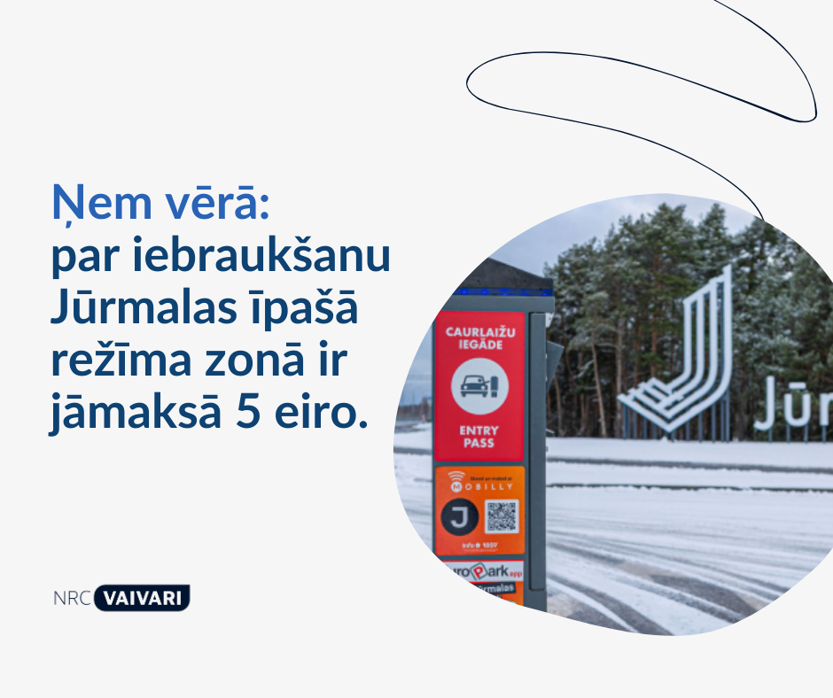 Ņem vērā: no 1.janvāra iebraukšana Jūrmalas īpašā režīma zonā maksās 5 eiro.